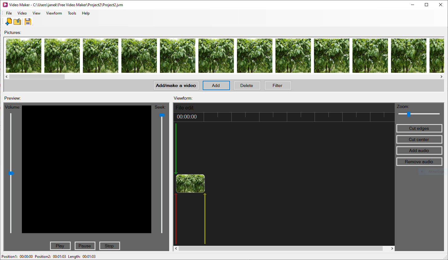 Video Maker on video ehitamise programm. Videot loote piltidest. Valmis videot saate muuta ja redigeerida. Programm on lihtne ja kasutaja sõbralik.